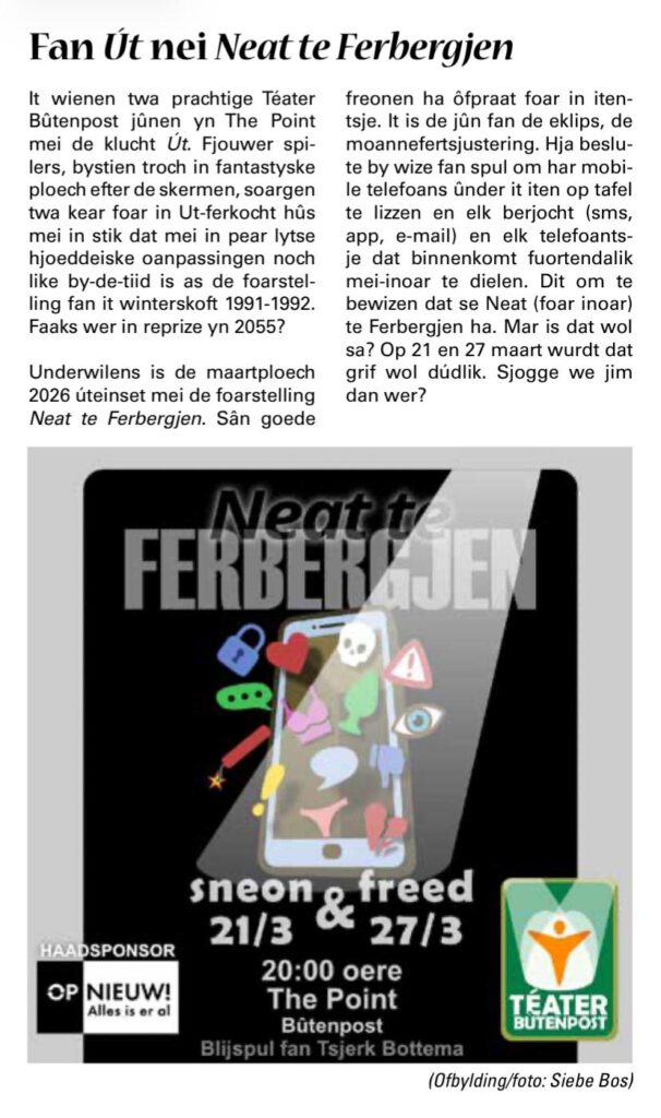 OPNIEUW! hoofdsponsor Téater Bûtenpost.
